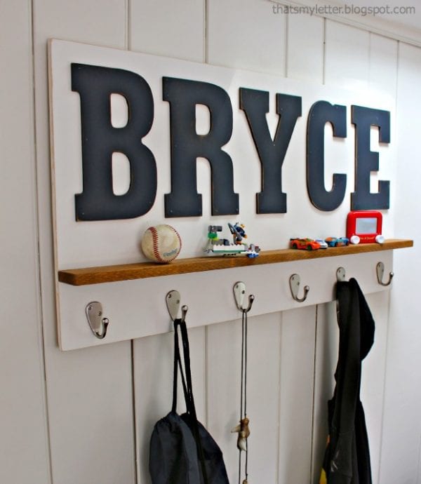 The large letters on this personalized wall shelf from That's My Letter make it into more than just a shelf with hooks.